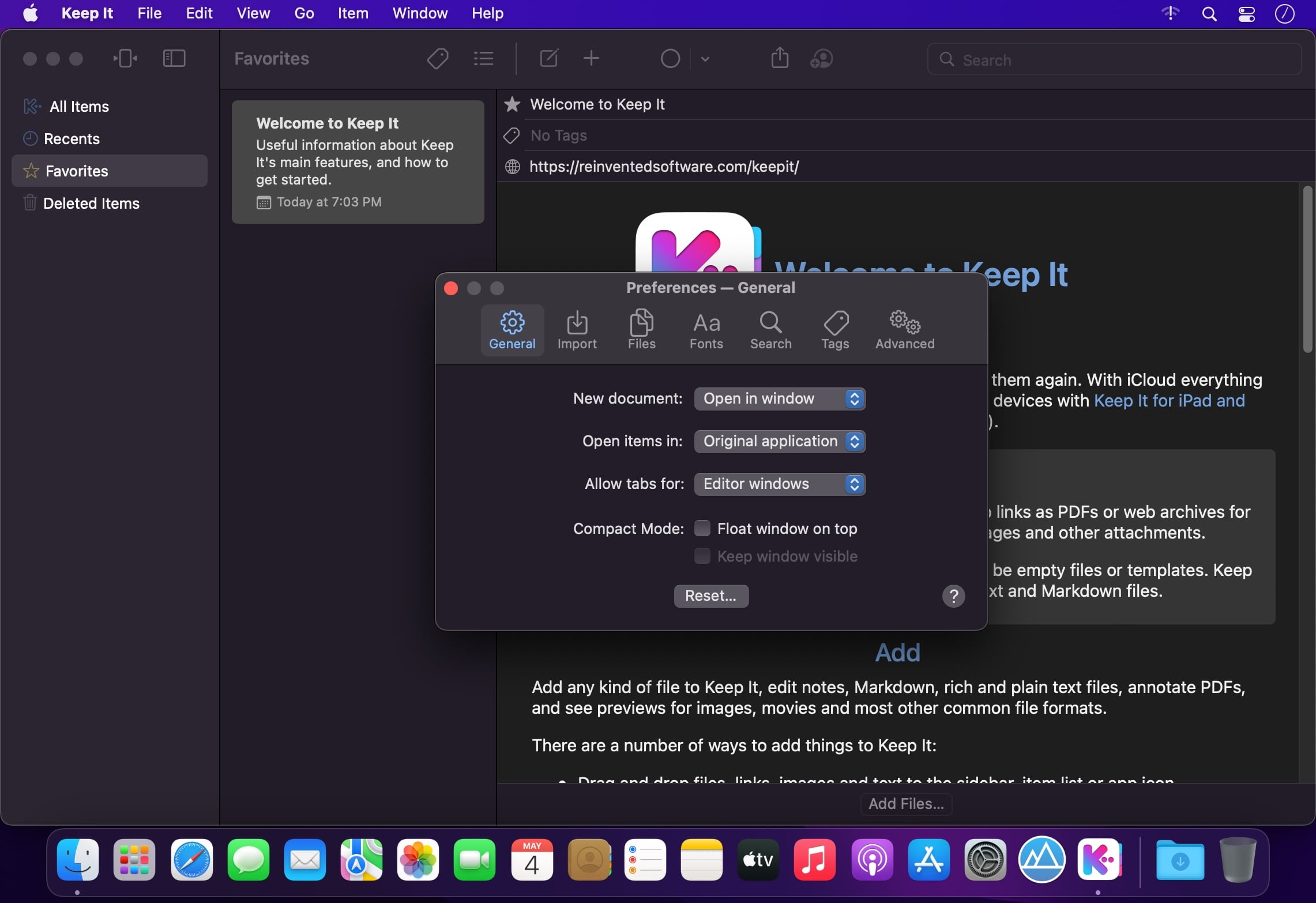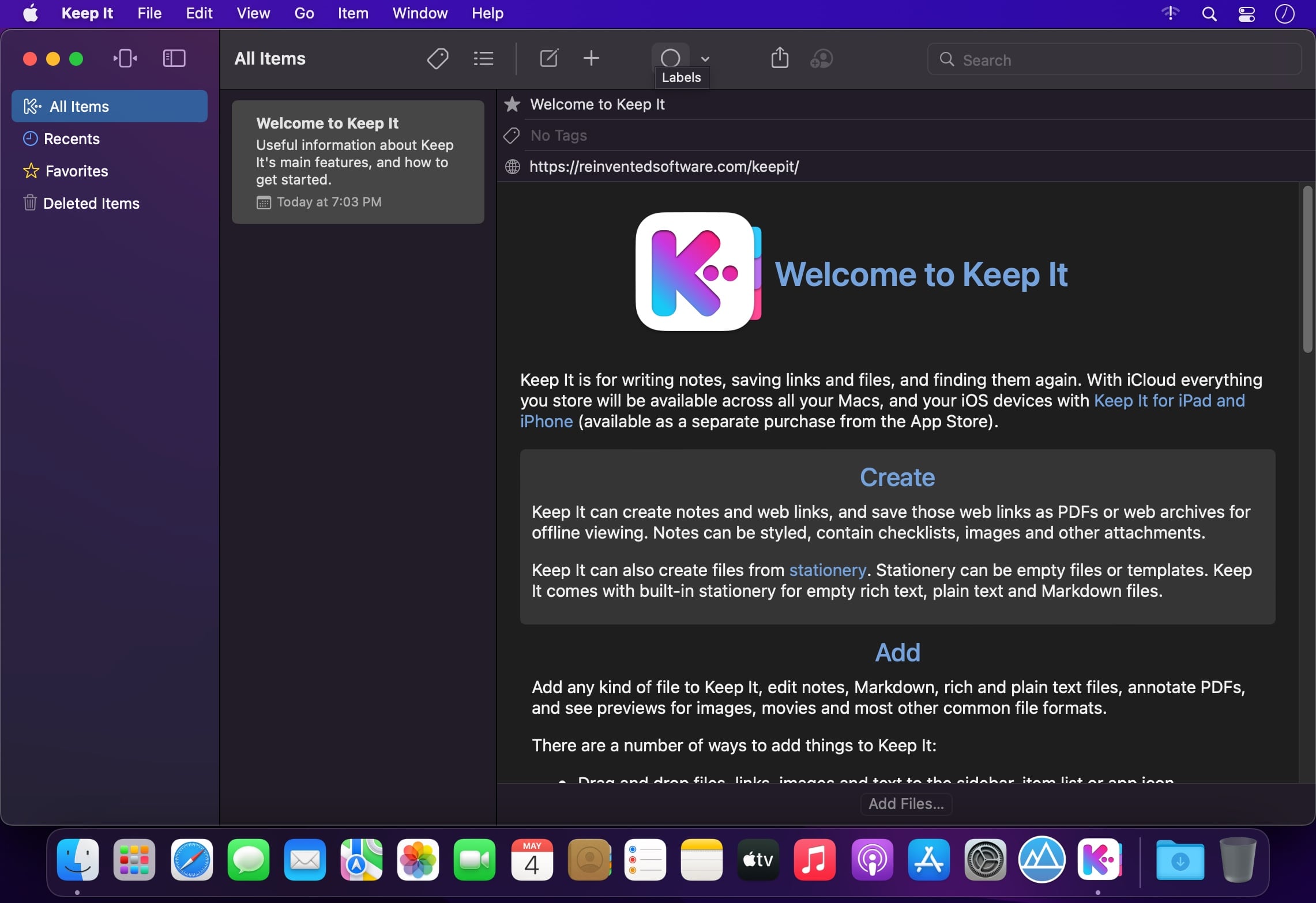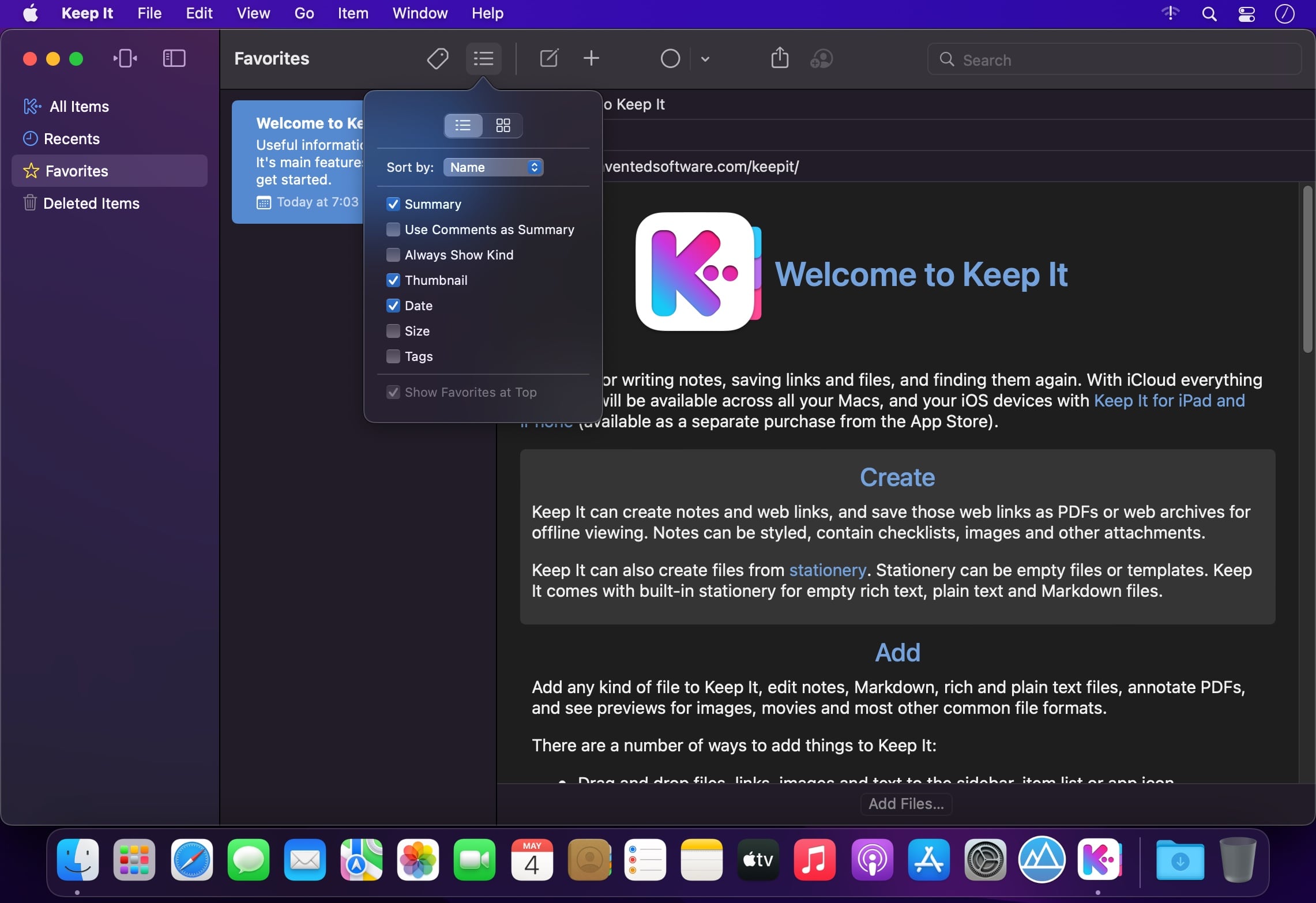 Any kind of file can be added to Keep It or saved to its folders, and opened for editing in their original applications. With iCloud, changes are automatically made available across all your Macs and iOS devices.