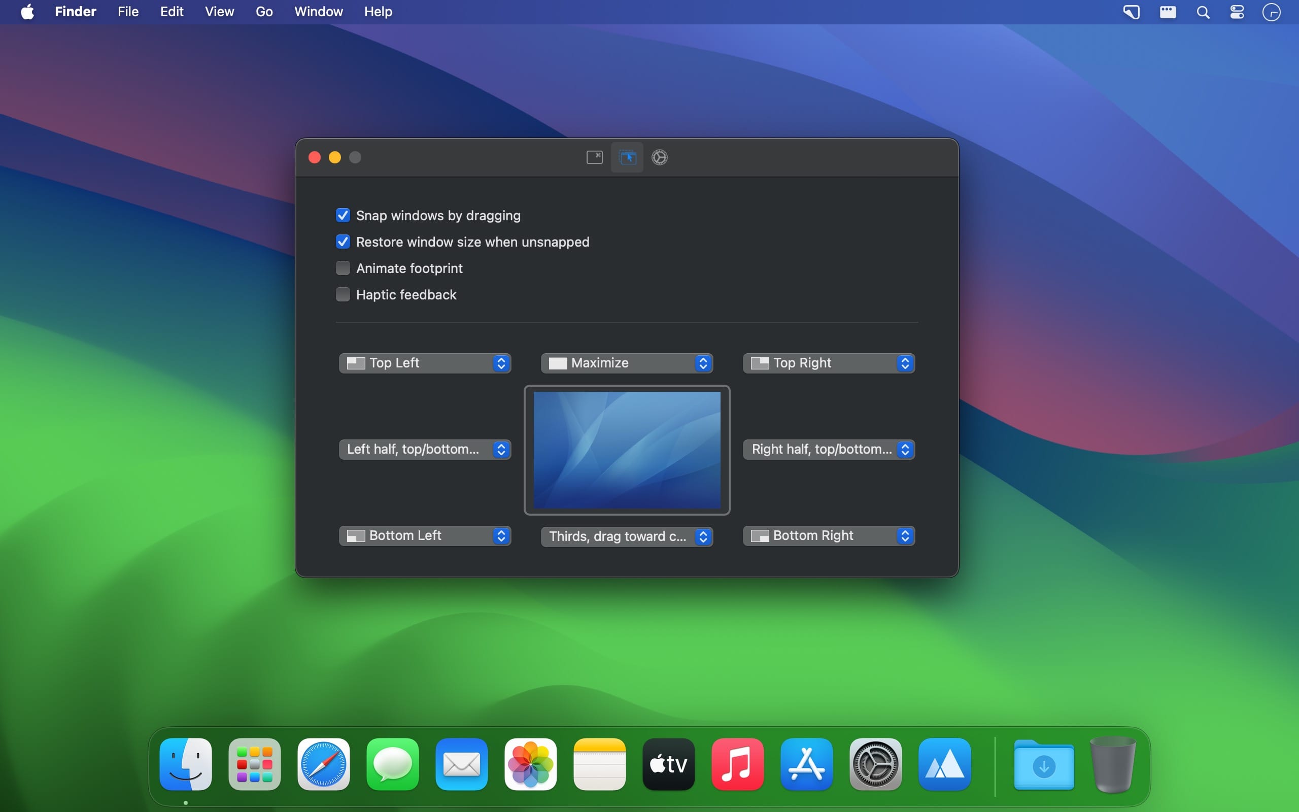 修复通知中心弹出时贴边吸附失效的兼容性问题|新增九宫格(3×3)、十二宫格(3×4)、十六宫格(4×4)精细布局及循环切换支持(@MyronKoch #1720)|新增按显示器编号快速投送窗口功能(@LucasZdv #1735)