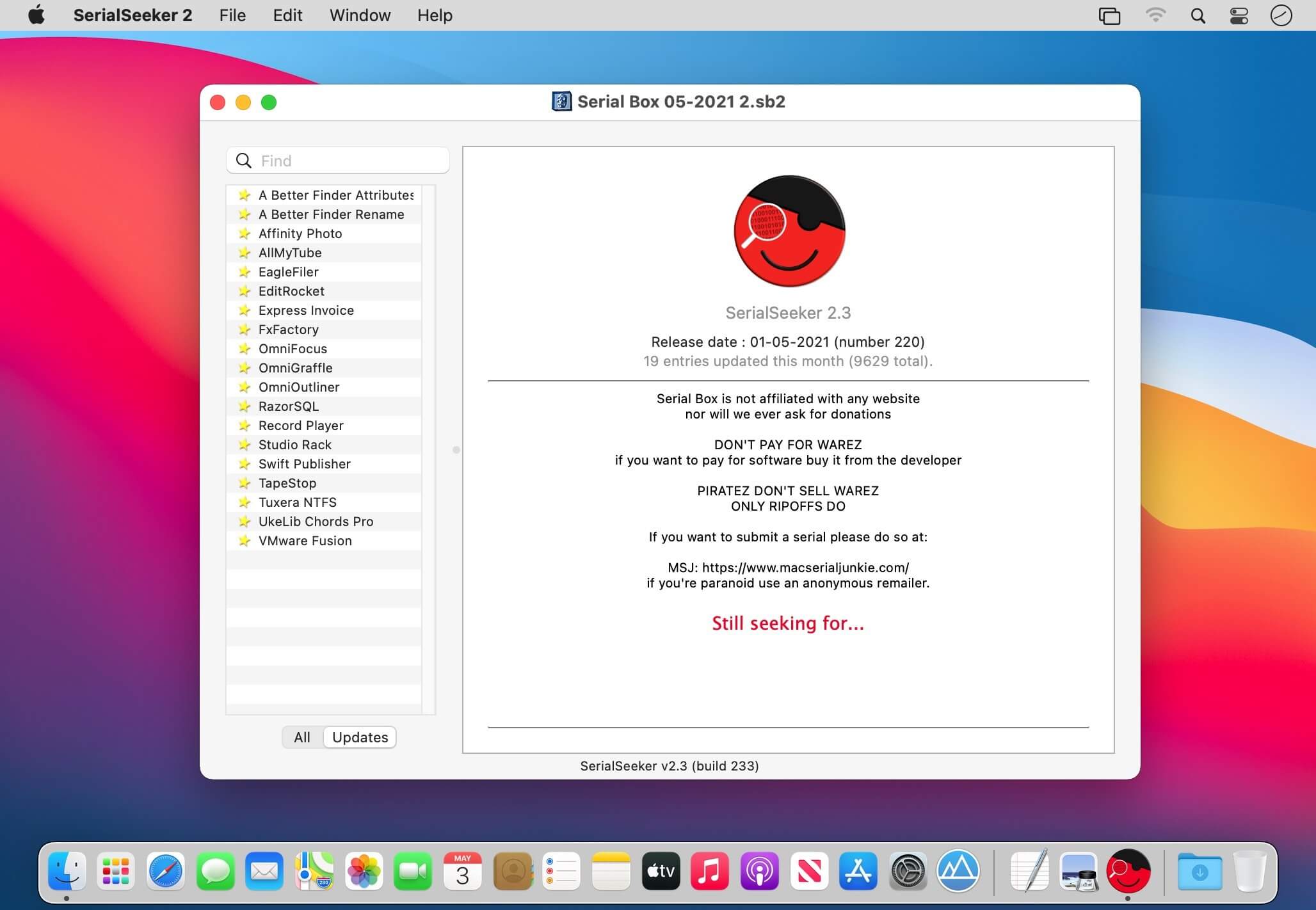 Serial Box SerialSeeker Q2-2026 macOS 序列密钥管理 每月实时更新 全兼容 macOS Sonoma/Ventura