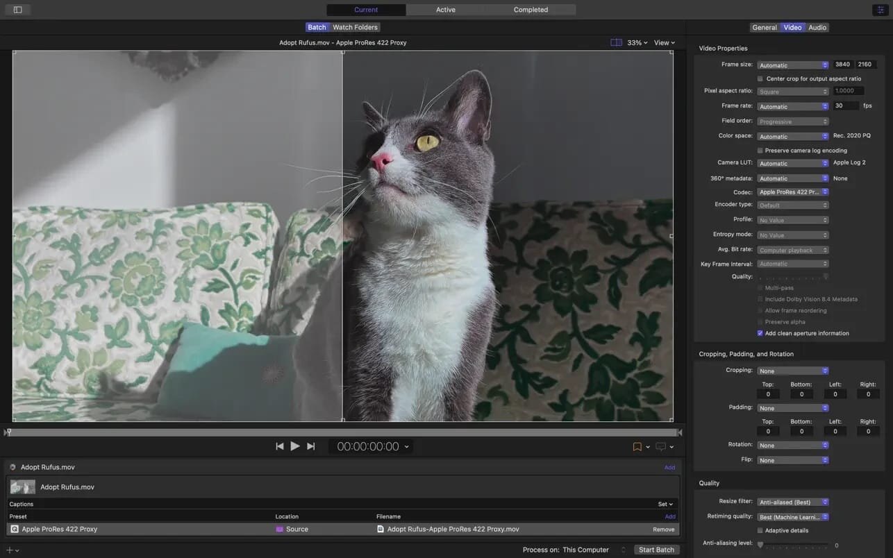 它还为你打通影像生产最后一环:原生支持 HEVC、MV-HEVC、H.264、MXF、ProRes 全格式互转;批量处理 DPX/TIFF/PSD/OpenEXR 序列;NTSC↔PAL、SD↔HD、隔行↔逐行智能重构;甚至为 Apple Immersive Video 生成专用 HTTP Live Streaming 包——专为 Vision Pro 空间计算环境深度调优。