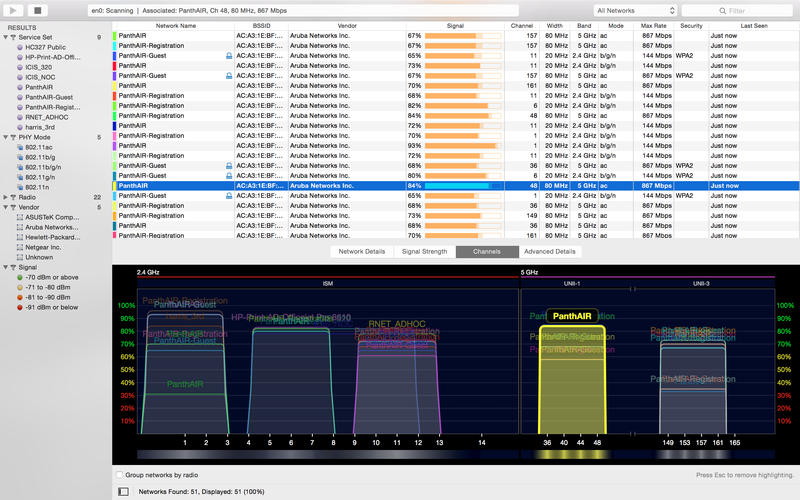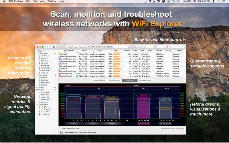你不再需要靠猜测排查Wi-Fi卡顿、掉线或网速骤降——打开WiFi Explorer,立刻掌握整个无线环境的“健康图谱”。它把看不见的射频世界变成可读、可比、可优化的实时数据流:从邻居路由器的隐形干扰,到自家AP隐藏的配置缺陷,再到5GHz频段里被挤占的80MHz宽通道,全部一目了然。