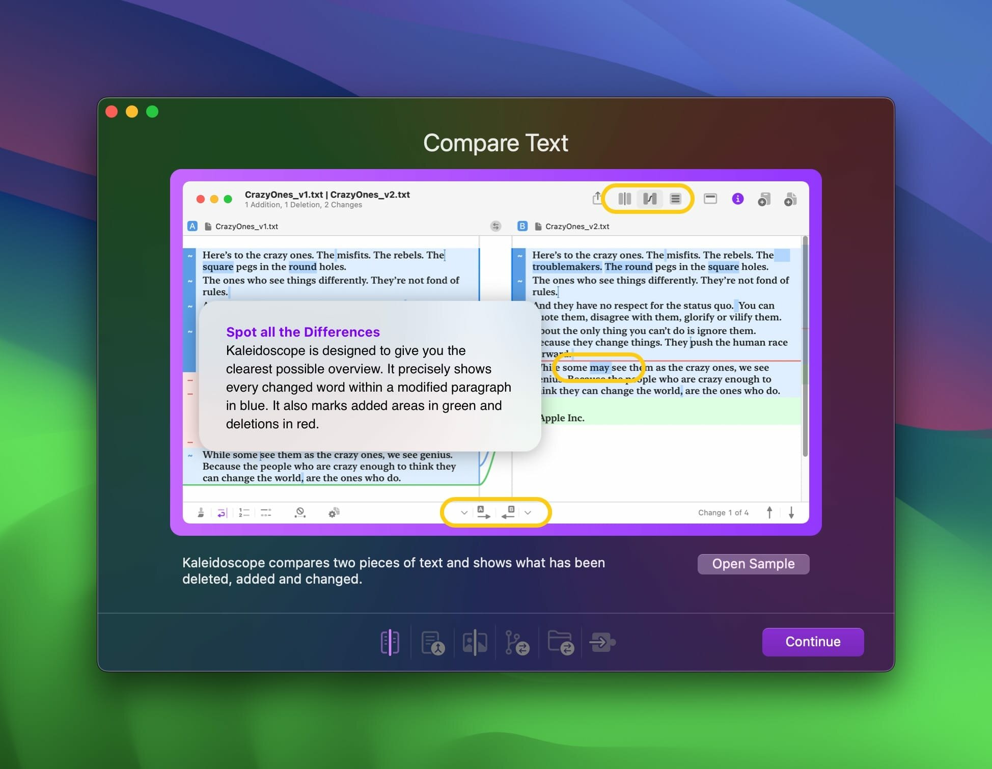现在,把文件比对这件事交给 Kaleidoscope:它不只是高亮不同,更是你的视觉决策中枢——无论你正处理产品需求文档的修订稿、设计师交付的UI切图、前端组件的分支代码,还是整个 Xcode 工程的版本快照,它都以开发者级精度+设计师级直觉,为你铺开清晰路径。