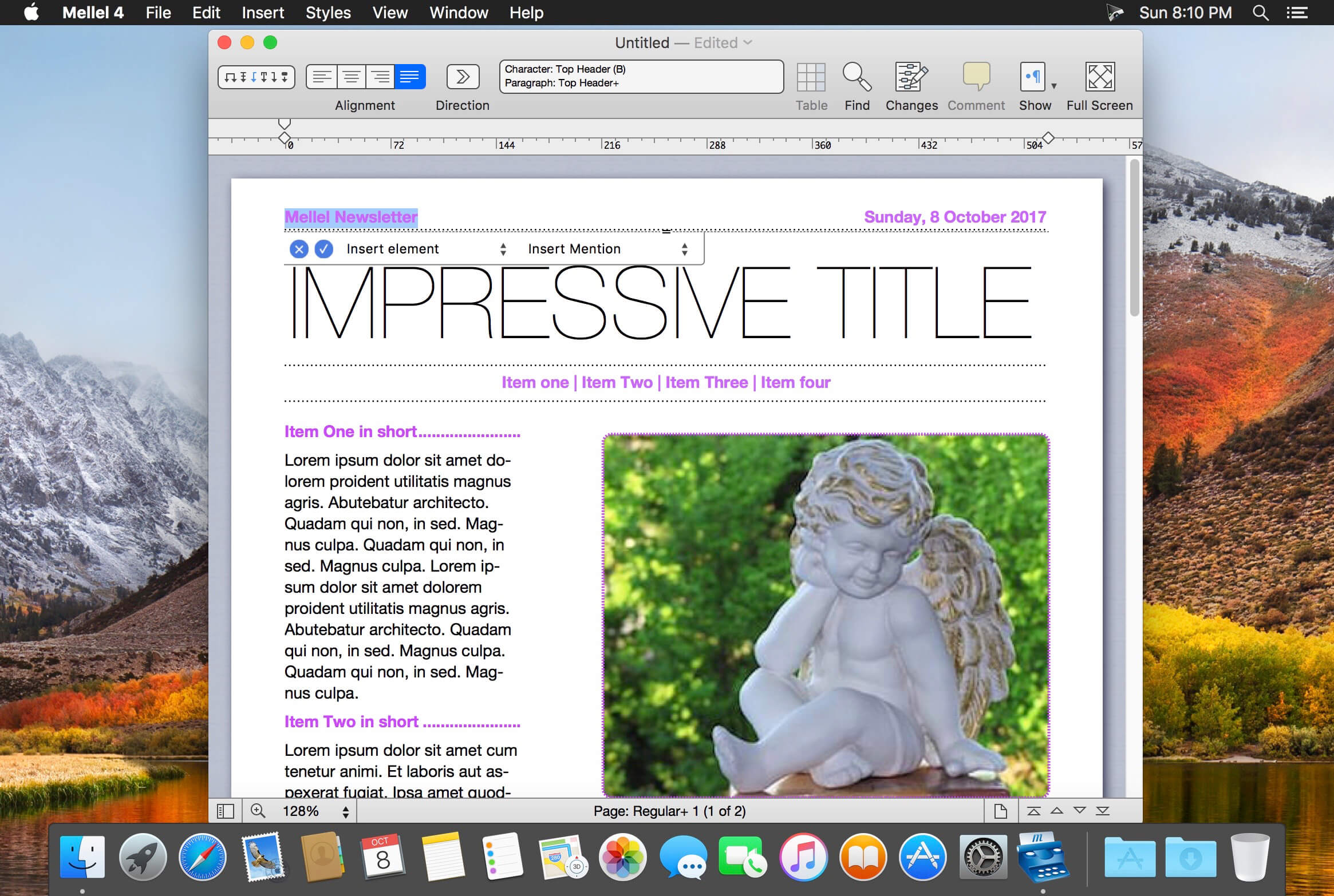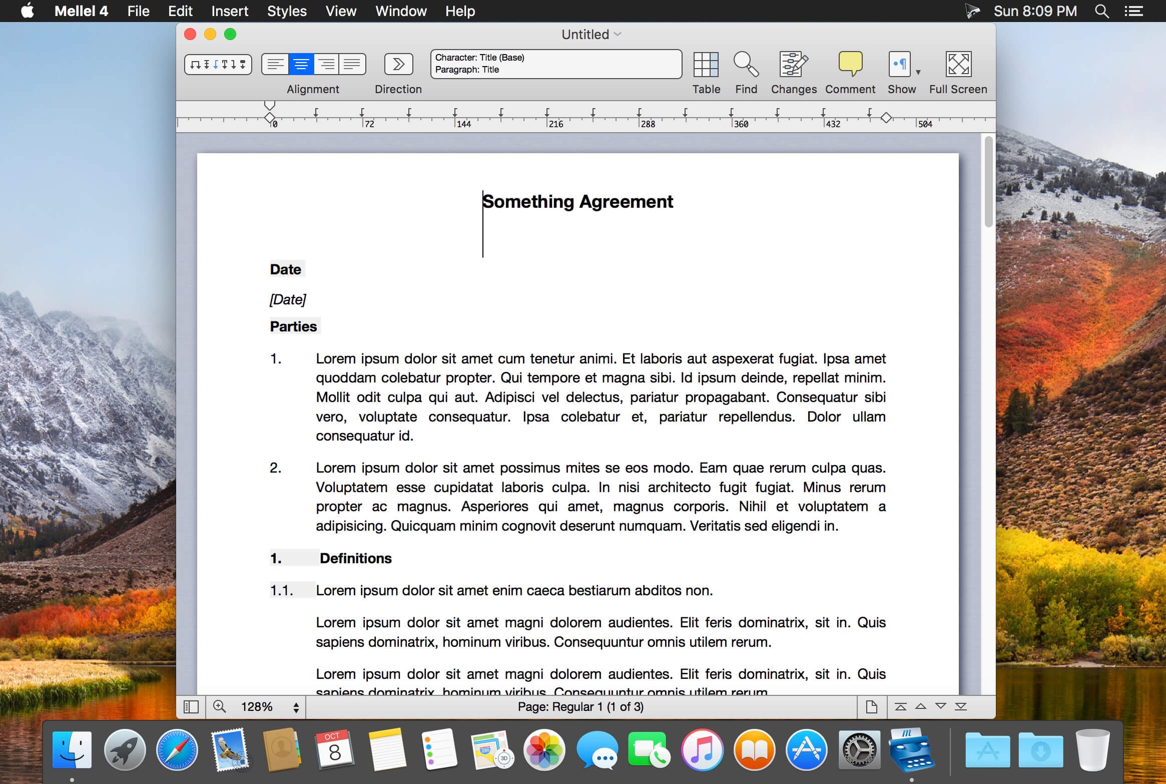 Dark Mode: Mellel's user interface and (optionally) document content will adapt to the system Dark Appearance when selected.