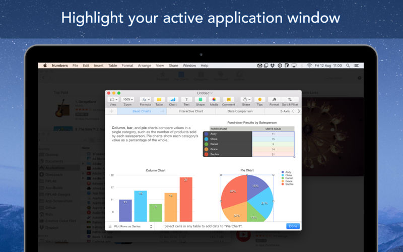 你无需切换全屏、关闭应用或手动整理桌面。只要开启 Window Focus,它立刻识别你正在交互的窗口(哪怕同一 App 开着 5 个文档),并为你智能决策:可选择仅高亮当前活动窗口,也可一键激活“整应用聚焦”——比如把整个 Safari 所有标签页同时提亮,而 Slack、Notes、Finder 等其他全部 App 则统一柔化为低饱和度背景层。这种颗粒度控制,正是它碾压同类工具的核心优势。